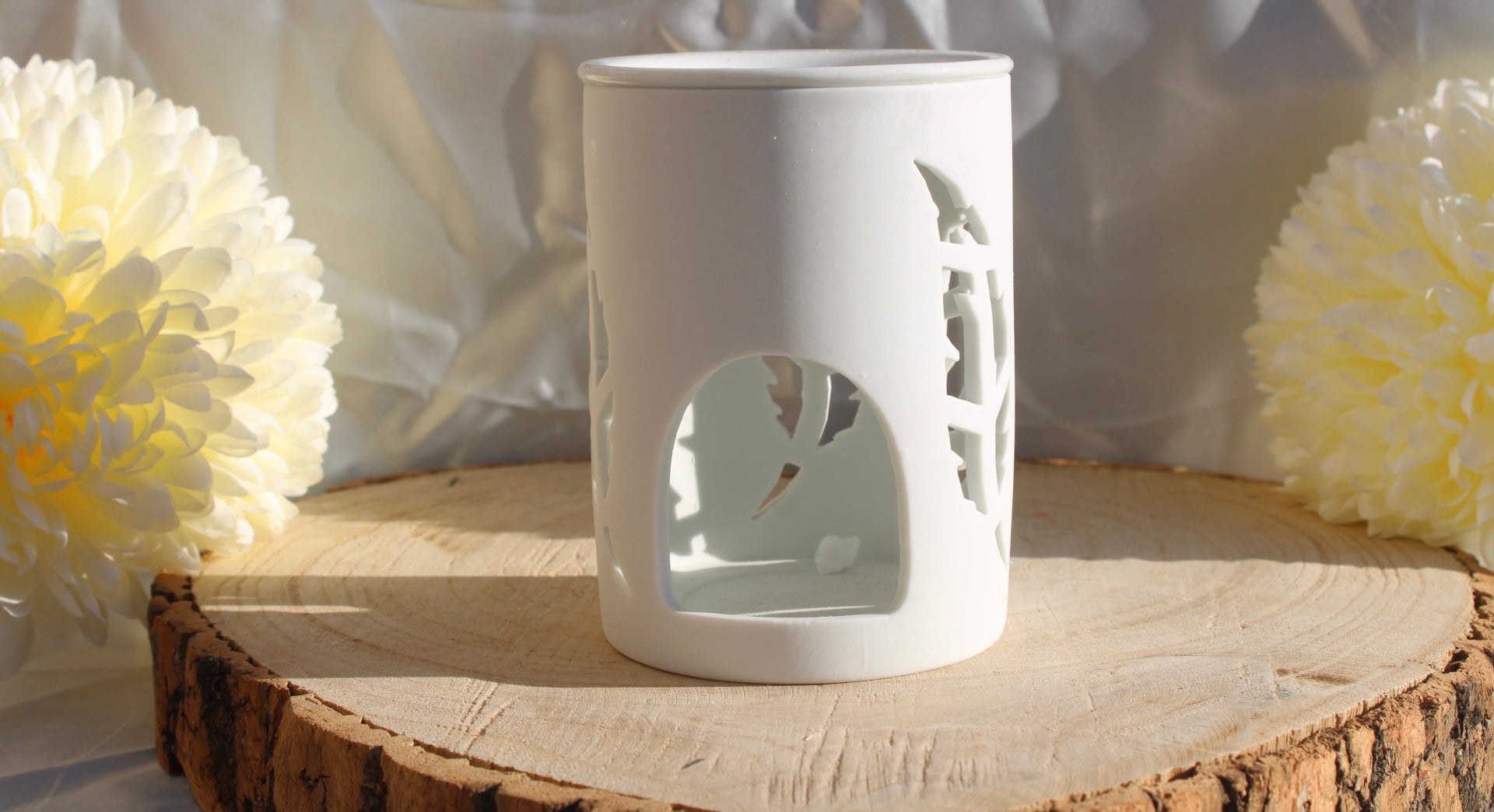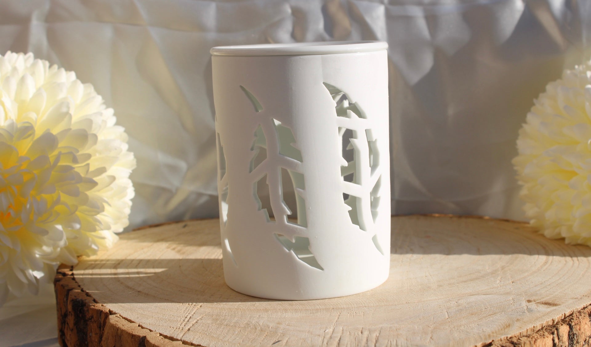 🤍 Brûleur en céramique blanc – Motif branches 🤍